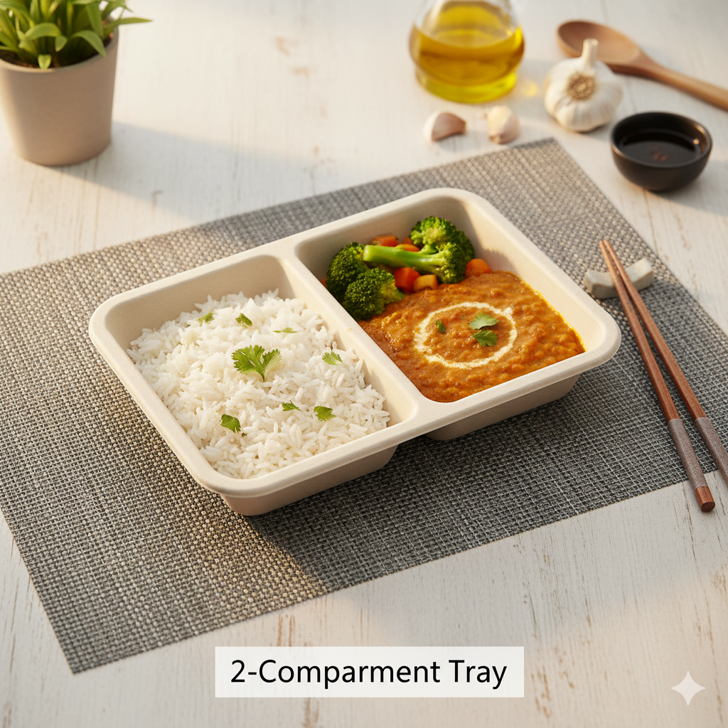 Eco-friendly bagasse tray made from sugarcane fiber, durable, biodegradable, and perfect for serving food sustainably.
