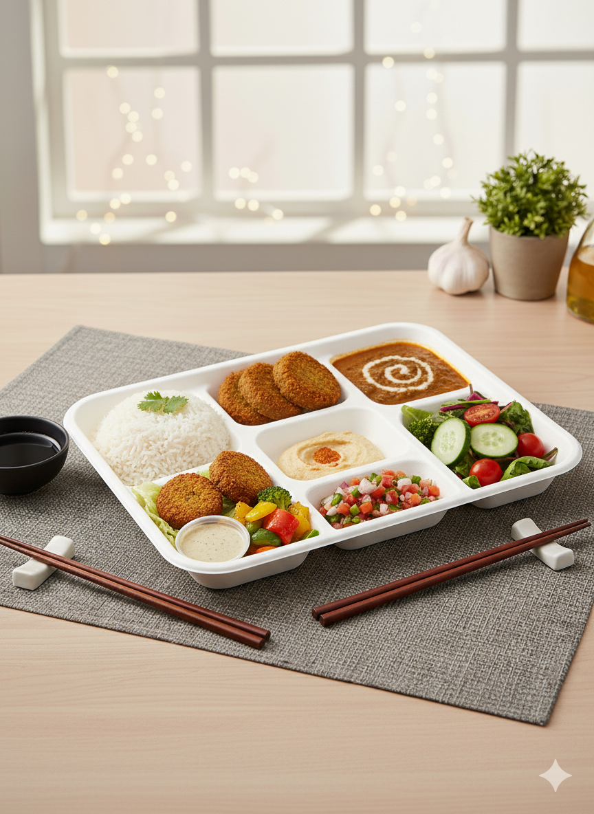 Our Meal tray feature sections to keep different foods separated, perfect for meals with sides. Made from sustainable materials, they're ideal for school lunches, cafeterias, and catering.
